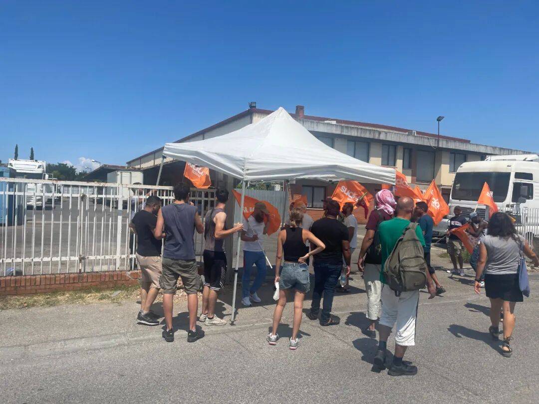orlì)。7 月 2 日上午,位于福尔利的 Sofalegname 沙发制造厂的工人上班时惊讶地发现,厂内的设备和原料已被打包进集装箱,正准备运往中国,他们立即封锁工厂,拦下货物。去年 12 月,这些巴基斯坦工人曾通过罢工争取到正式合同,结束了长期剥削;然而半年后,公司企图“打包跑路”,迫使他们再次求助 Sudd Cobas,并在厂门口驻守。
