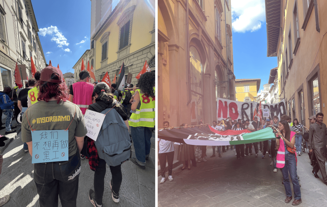5 月 1 日,王姐和同事响应号召,从佛罗伦萨坐半小时的火车来到普拉托,加入 Sudd Cobas 发起的劳动节大。
